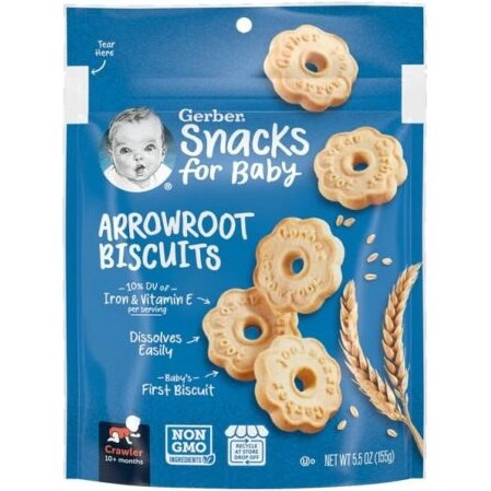 بیسکویت کودک گربر تهیه شده از بهترین مواد اولیه و تخم مرغ و شیر تازه میباشد. این محصول منبع ویتامین ها و مواد معدنی است که شما با اطمینان می توانید نوزادان خود را علاوه بر شیر مادر از ماه دهم به این بیسکویت خوشمزه عادت دهید. این بیسکویت حاوی 12 نوع ویتامین ، 7 نوع ماده معدنی و آهن میباشد. شما میتوانید این بیسکویت را به راحتی در شیر یا آب میوه نرم کرده و به کودک دلبندتان بدهید. این بیسکویت یک غذای کودک فوق العاده برای کودک دلبندتان میباشد. بیسکوئیت گربر بدون شیر بوده و برای کودکانی که به پروتئین گاوی حساسیت دارند نیز میتوانند از این بیسکوئیت بدون شیر استفاده کنند.